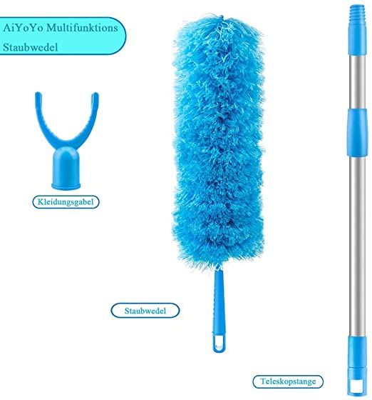 - SPOLVERINO TELESCOPICO DA 280 CM: Il 4 pezzi spolverino per polvere blu include 1 asta telescopica da 240 cm, 1 spolverino in fibra da 40 cm, 1 ciniglia da 40 cm, 1 spazzola a ragnatela