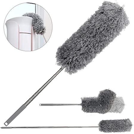 - MATERIALE: La maniglia del collettore di polveri in acciaio inossidabile è retrattile e lo spolverino in fibra e la ciniglia sono realizzati in microfibra, che può essere piegata a piacimento ed è leggera, resistente e durevole